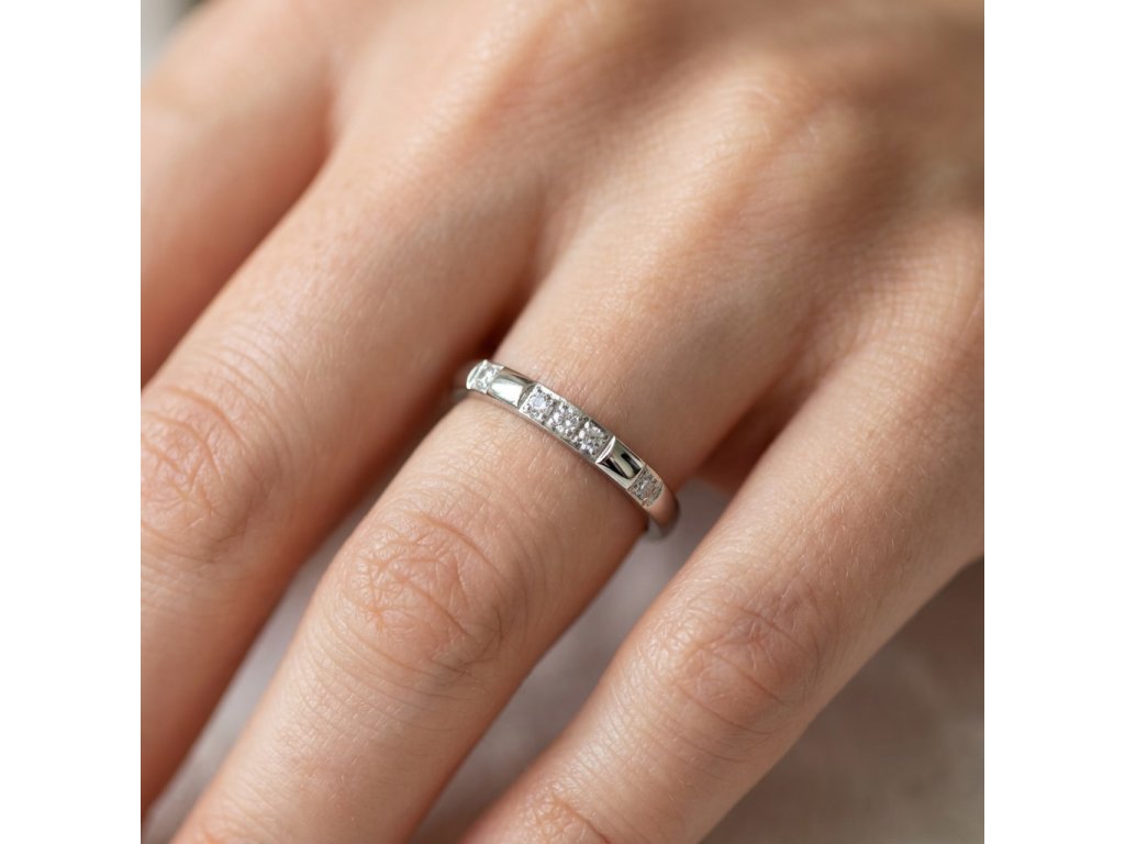 Minimalistický prsten s rhodiovým leskem a AAAA zirkony