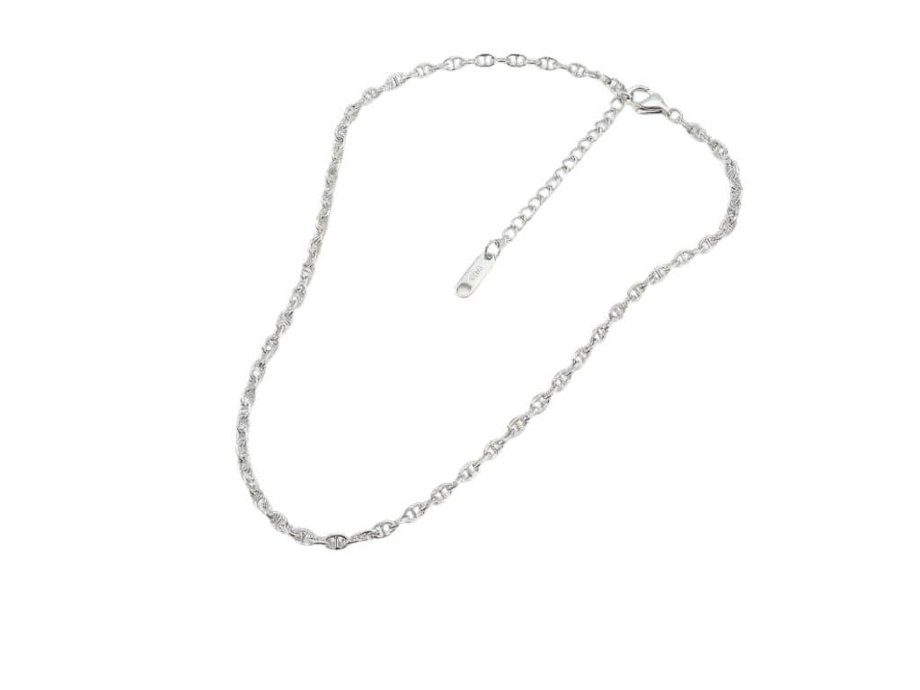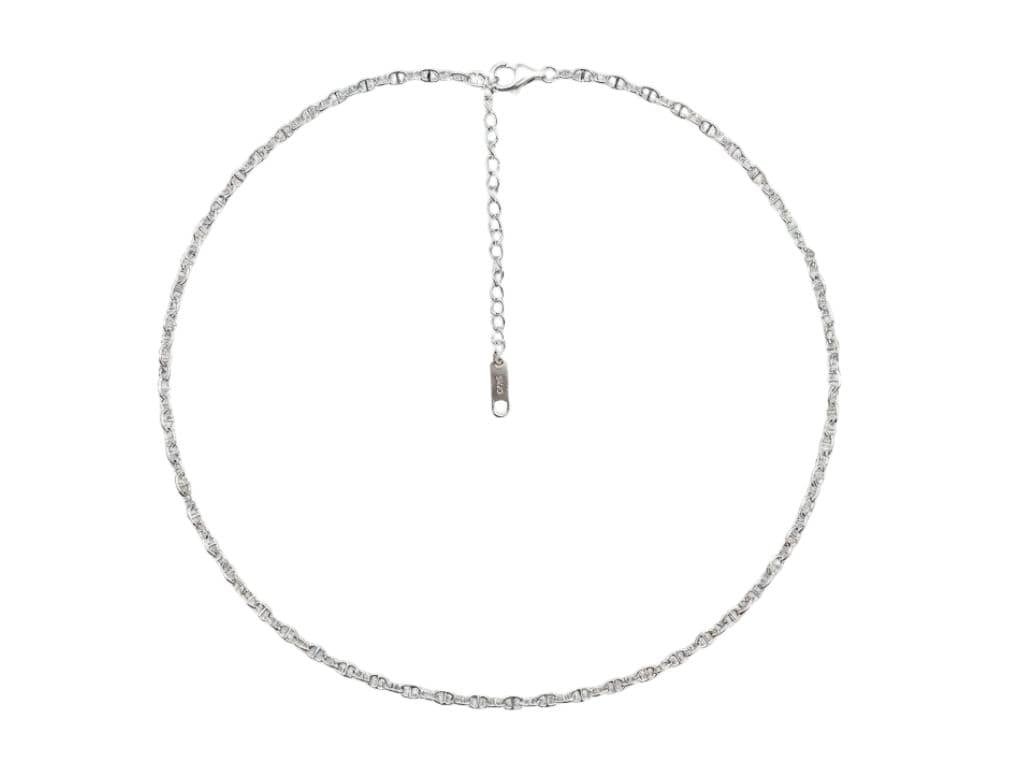 Rhodium podtrhuje čisté linie řetízku a dodává mu moderní, ledově elegantní charakter.