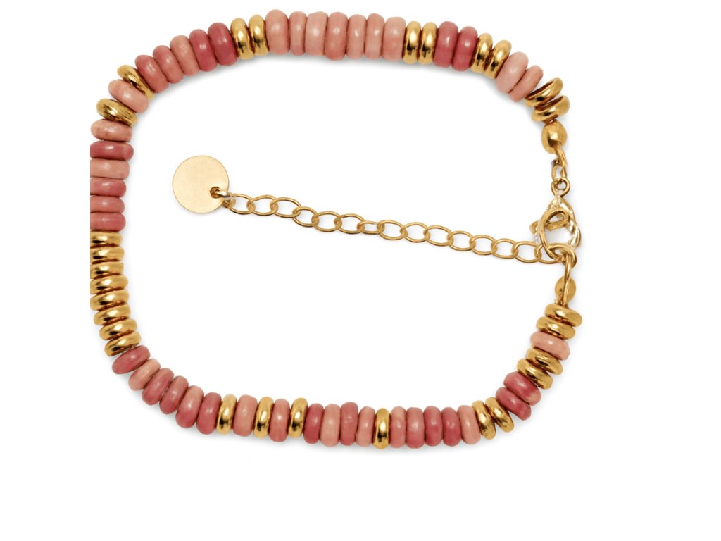 Růžový náramek z přírodního kamene se zlatými akcenty