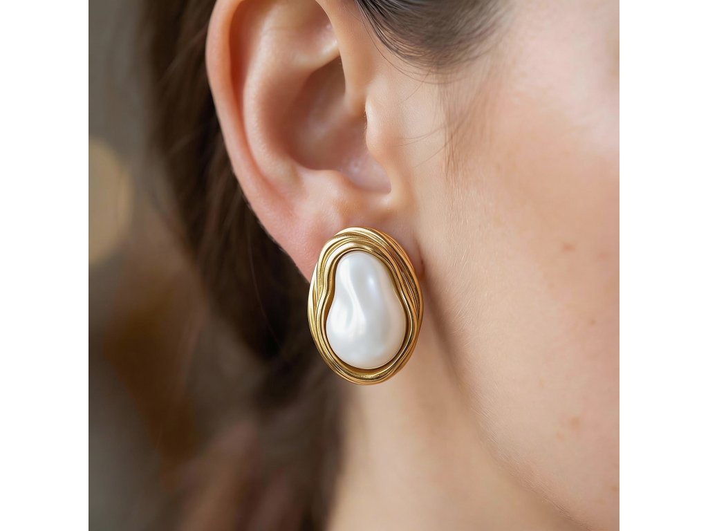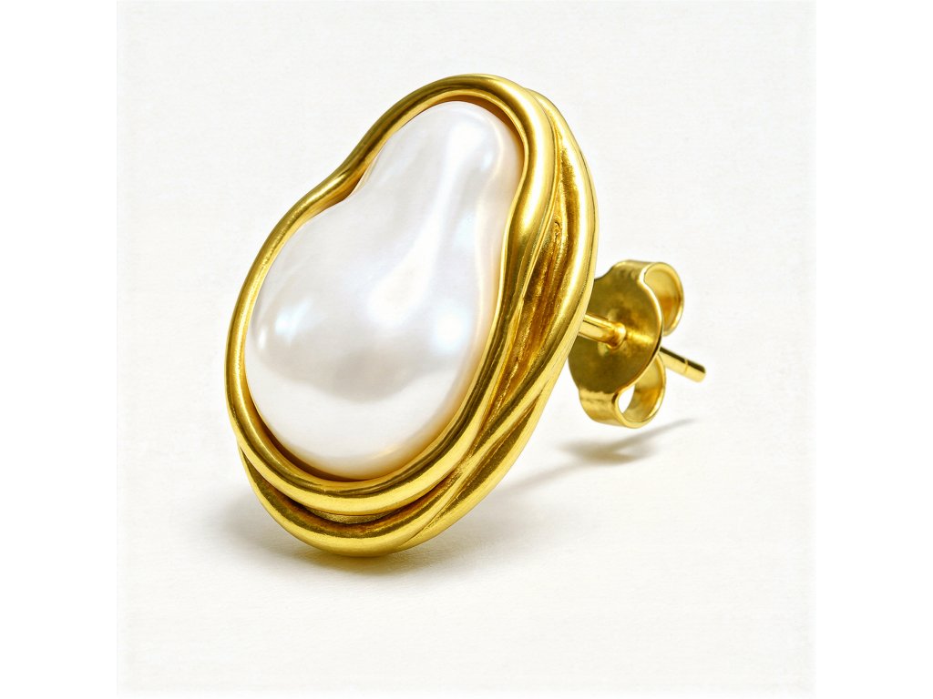 Perlový bead s nepravidelným, přirozeným tvarem představuje moderní luxus postavený na kráse nedokonalosti. Jeho plynulá silueta a jemně lesklý povrch proměňují každou náušnici v nositelný sochařský objekt.