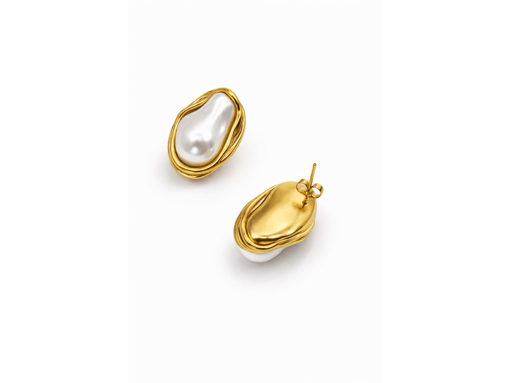 Sochařské náušnice s perlou ve zlatém rámu